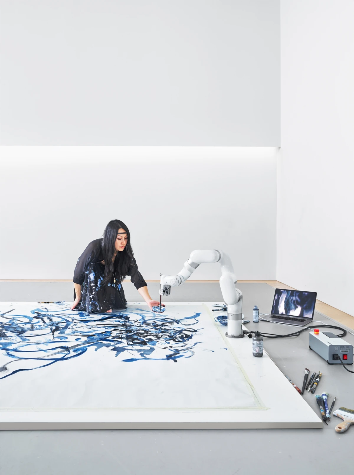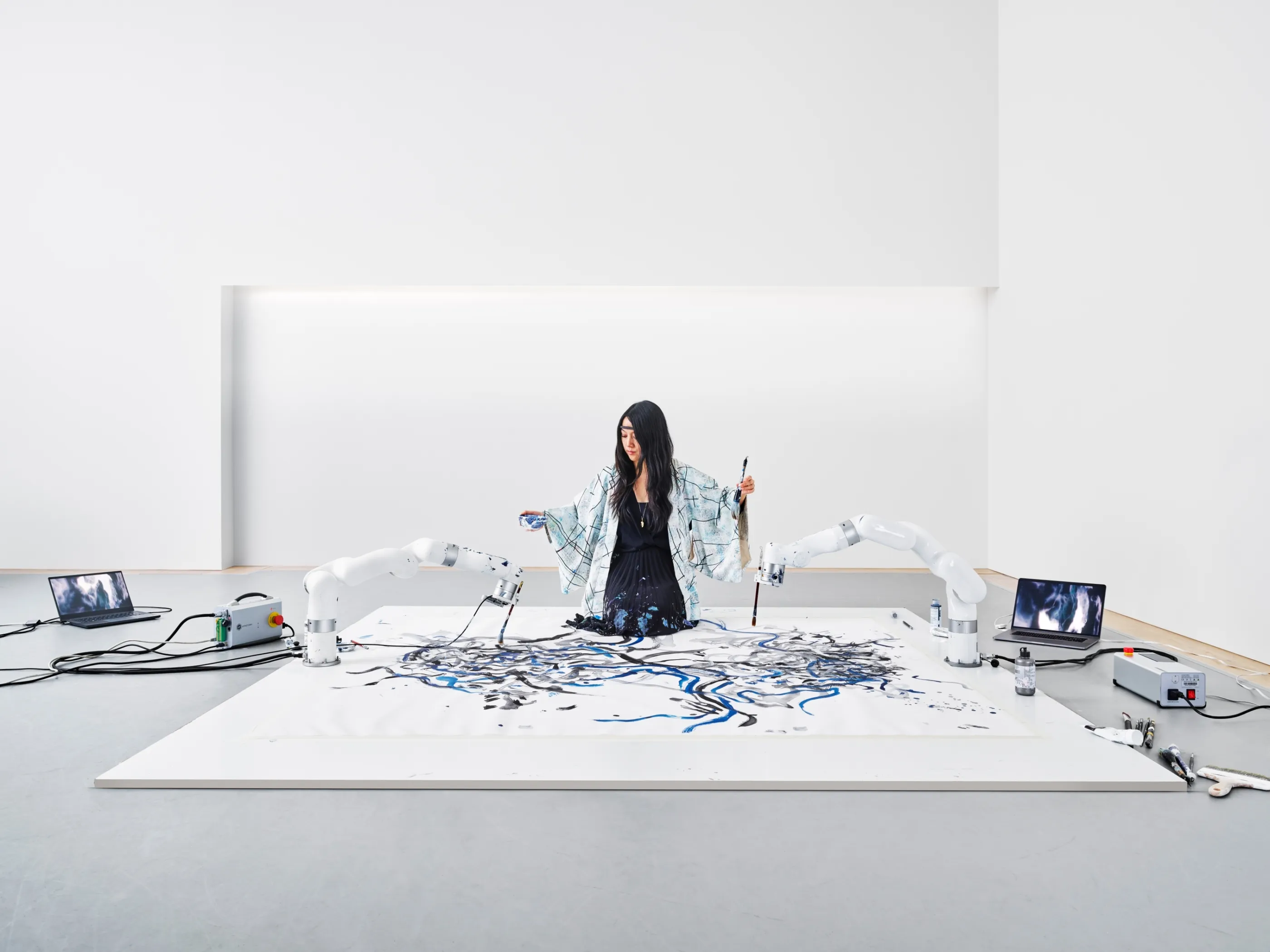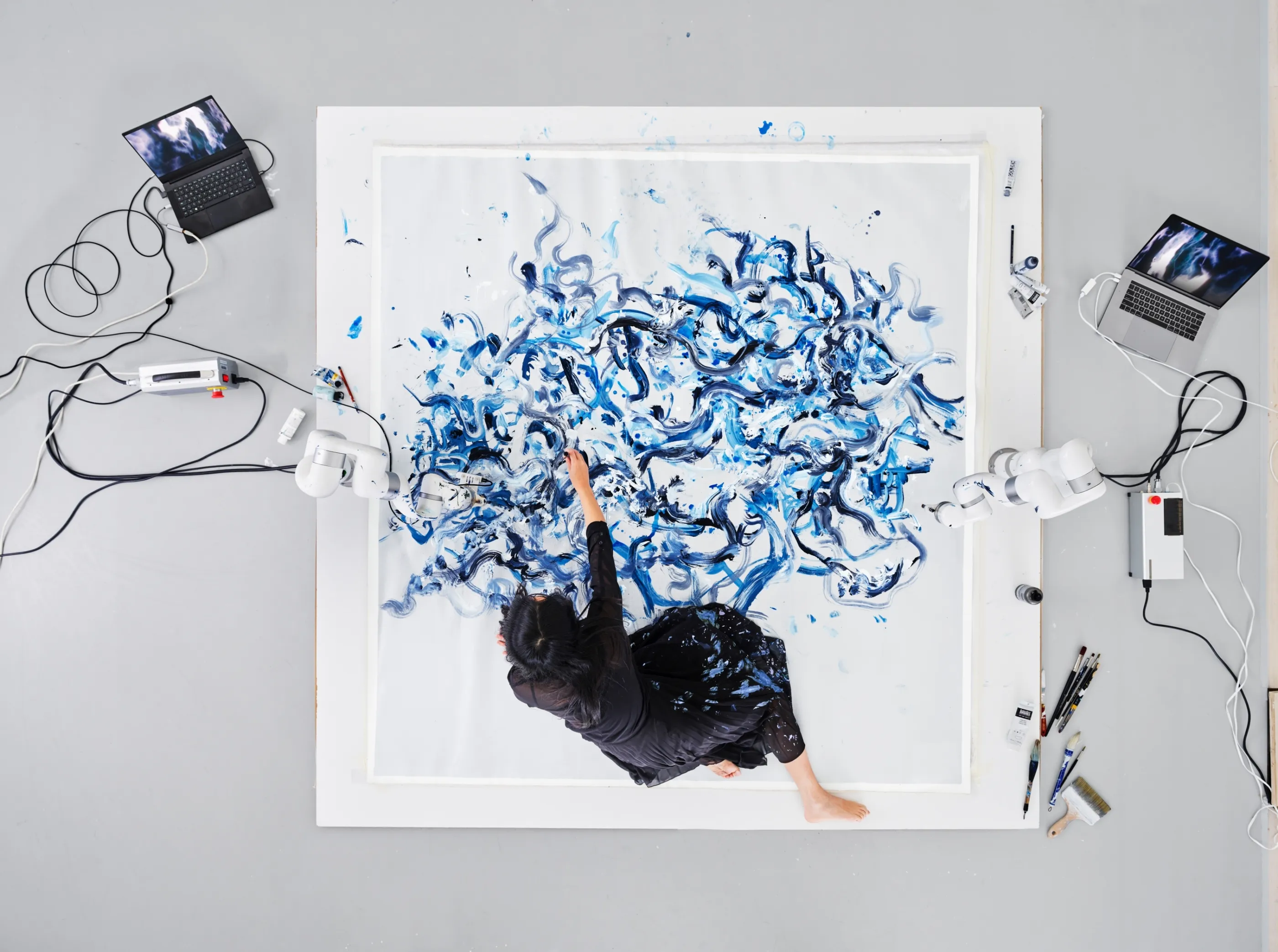 In collaboration with McKinsey for QuantumBlack’s new visual identity, photographer Benedict Redgrove captured the art of Sougwen Chung, an AI artist and researcher who has created a painting that brings to life the concept of hybrid intelligence. Adding the final polish, the INK Retouch team highlight the beautiful swirling visuals created by the two robotic arms that are guided alongside Sougwen.