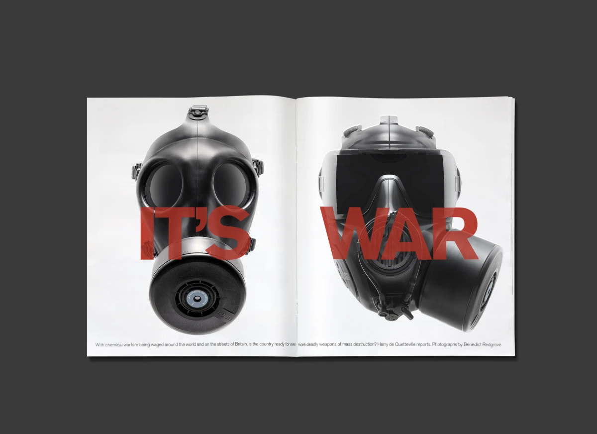 Striking imagery from our latest collaboration with Benedict Redgrove makes a compelling cover for The Telegraph. The series of images, with the INK signature clean, minimalist look, are framed against bold graphic design and an arresting story documenting the state of chemical warfare in the world today.