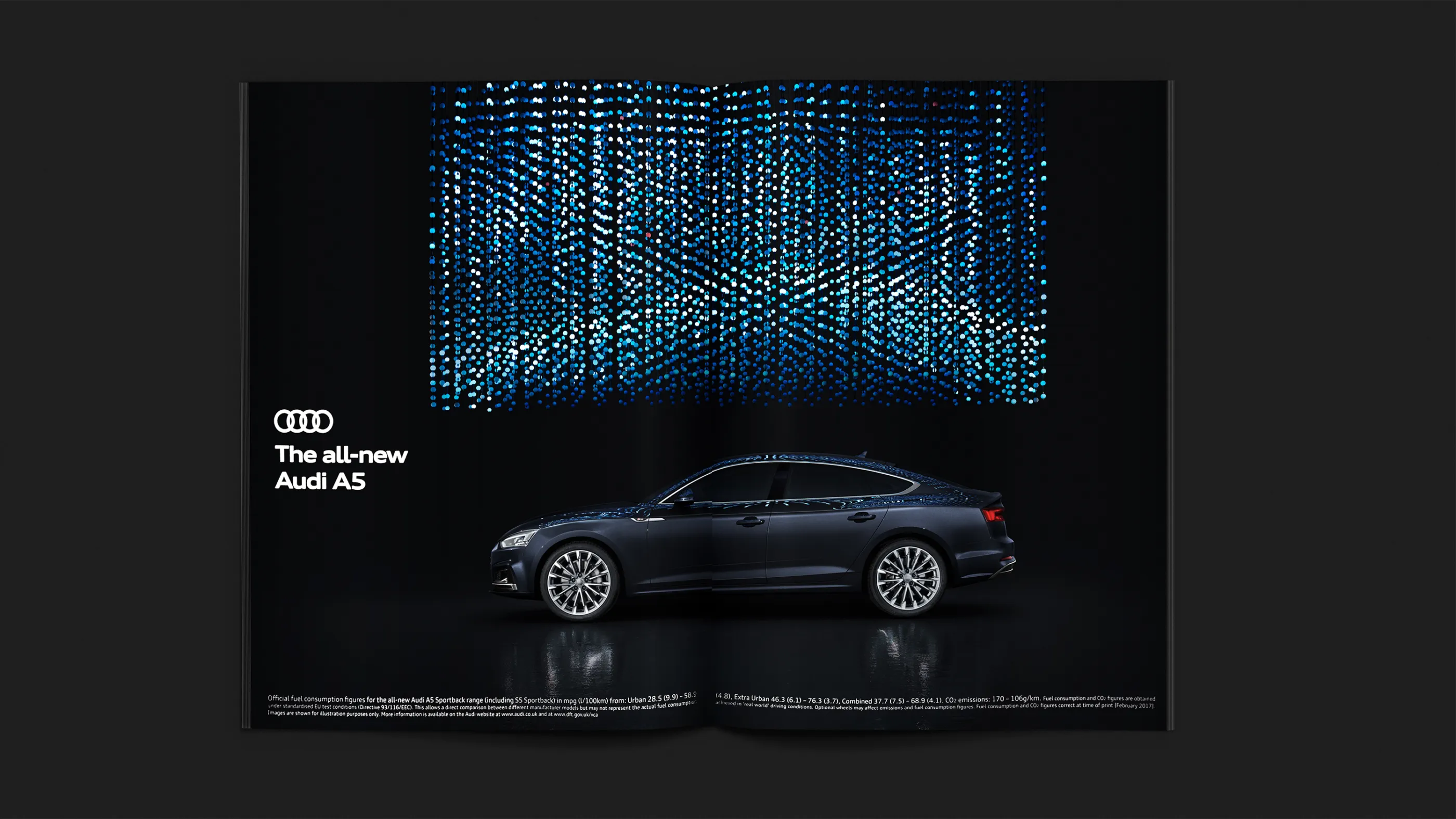 The Audi A5 combines timeless elegance with state-of-the-art technology. As part of BBH's latest campaign, photographer Benedict Redgrove captured the car beneath an commanding installation of light bulbs; passing the spotlight over to INK, we carefully incorporated the as-yet-unbuilt A5 Sportback in CGI and retouched each of the 4,536 light bulbs by hand to perfect that 'Vorsprung durch Technik' polish.
