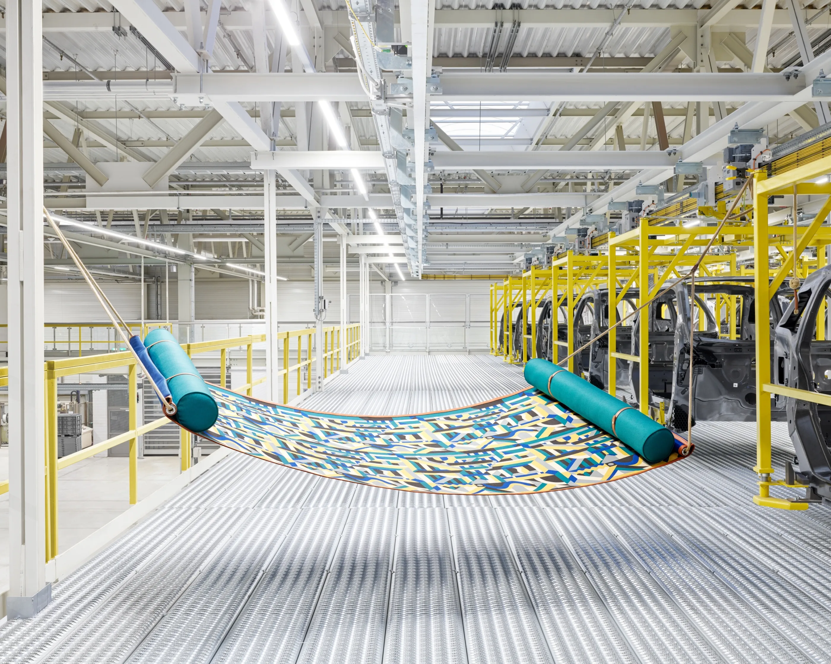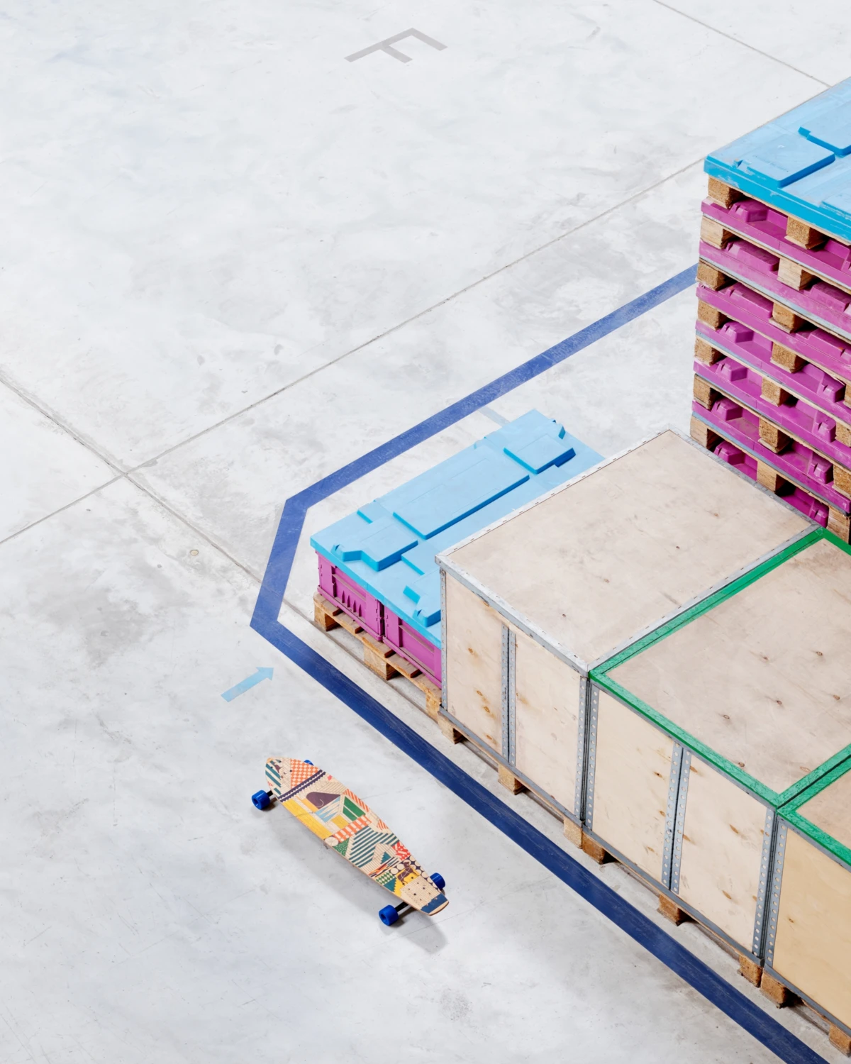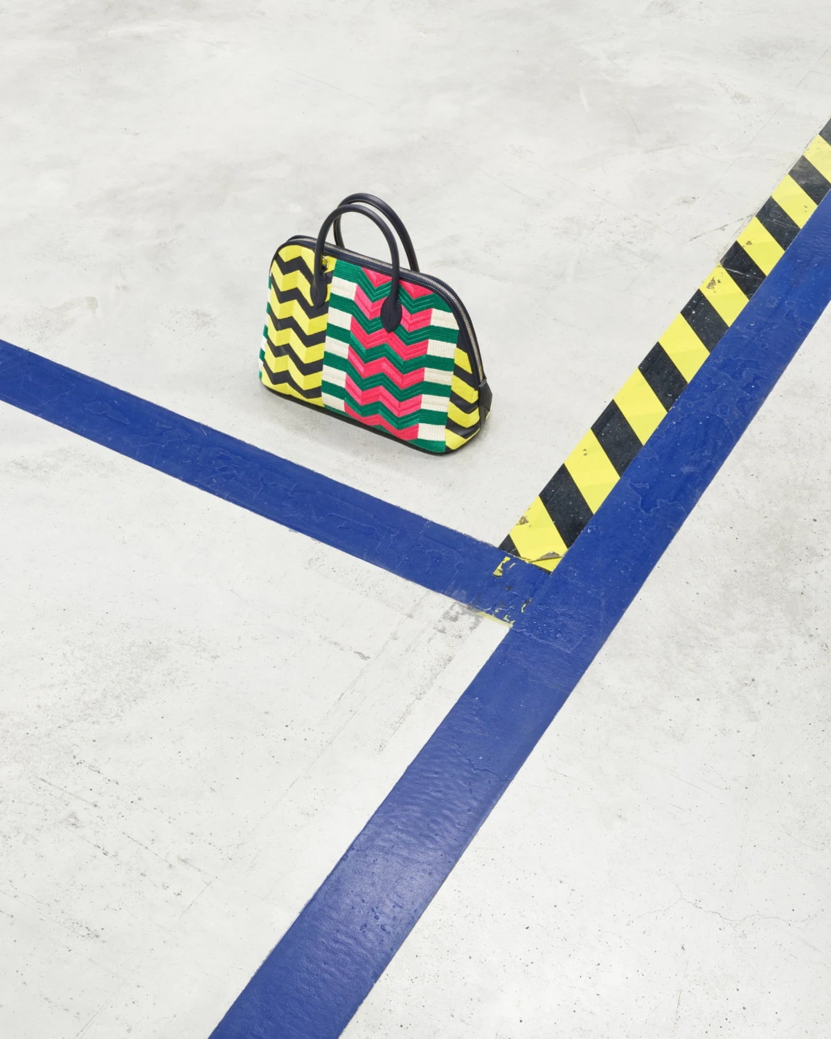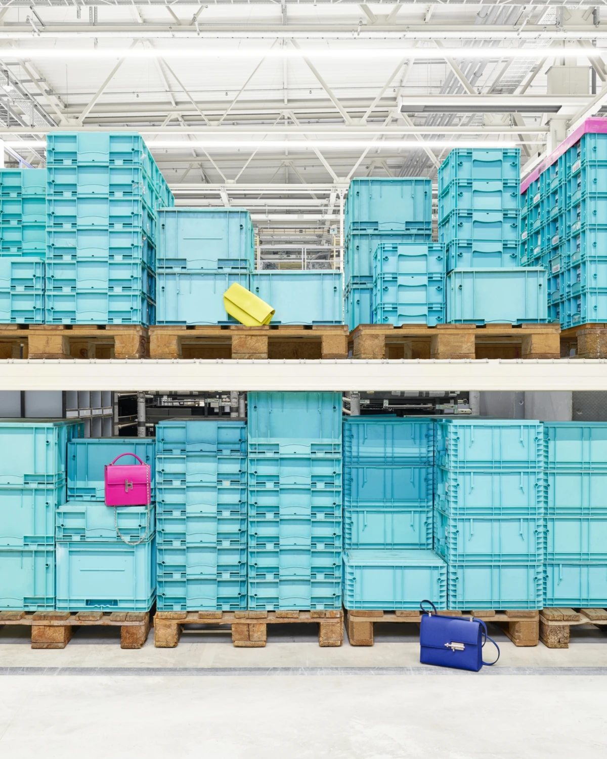 Monde d'Hermès Magazine Issue #71 Materials meet machinery in our latest creative retouch work. The bi-annual Hermès magazine plays host to a Memphis inspired shoot, photographed by Benedict Redgrove. We played with the bold colours and asymmetric boots, bags, silk scarves and even a skateboard in this giant mechanical playground.