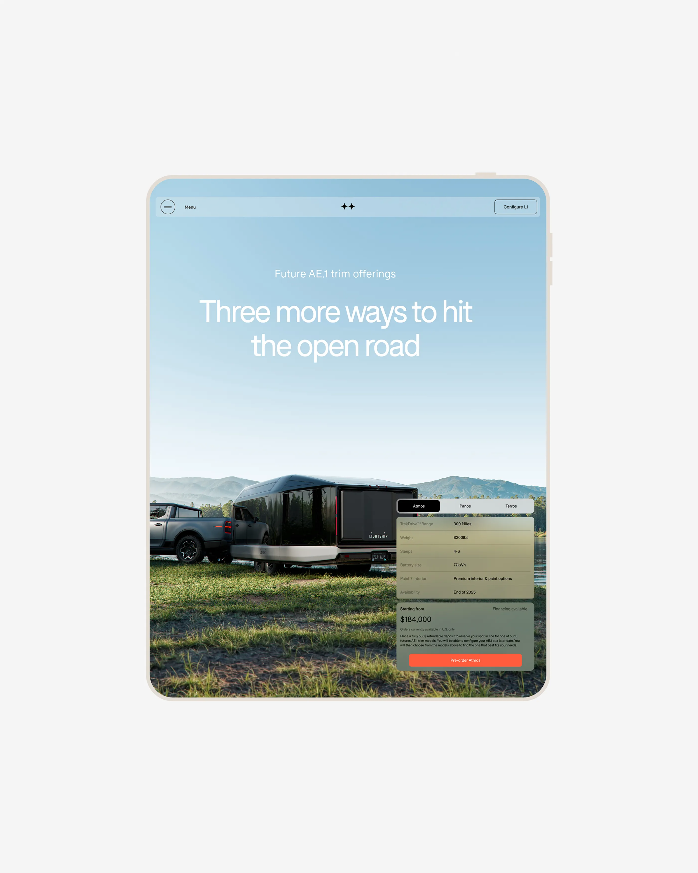 Lightship is revolutionizing adventure travel. Founded in 2020, it became the first company to set a new standard for all-electric recreational vehicles. For the global launch of the AE.1 Cosmos—Lightship’s most advanced solution for exploring the great outdoors—we worked closely with their team to deliver a comprehensive creative package.