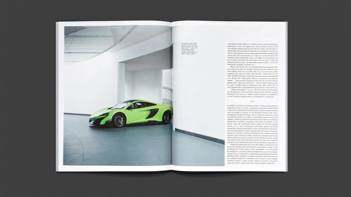 McLaren. A powerhouse of British automotive design. Add Esquire and a photographer who knows his way around a beautiful car into the mix and the results are bound to impress. We teamed up with Benedict Redgrove to deliver his series documenting Mclaren’s supercars, recently featured in The Big Black Book - Esquire’s annual guide to ‘the people, places, products and provocations for the season to come’.