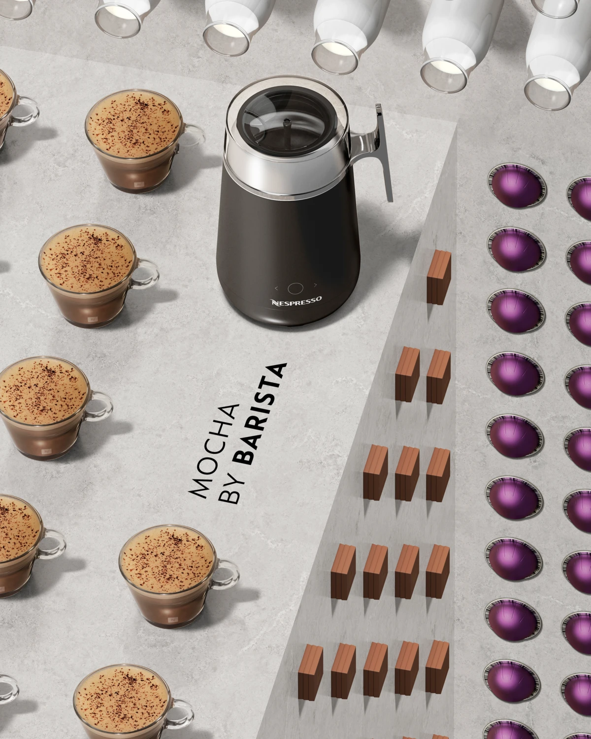 In collaboration with Visual Artists, Wednesday Agency and Nespresso USA, we created this mesmerising, gravity-defying suite of stills and CG animations to launch the all new Barista. Combining our own blend of pixel perfect retouching with accurate photoreal Nespresso products, ingredients and glassware modelled from scratch, we built a surreal world with picture-perfect crema ready for the wake-up call.